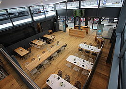 - 100-120 seats with restaurant seating (60-80 seats on the lower level, 40 seats in the gallery)